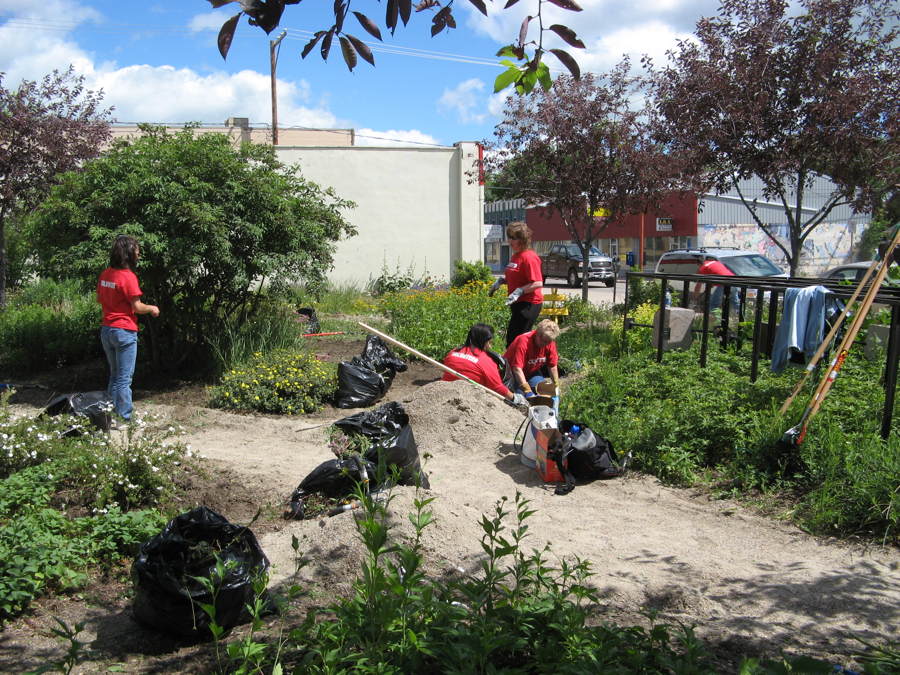 Unfortunately, over the years since the Art Park’s beginnings, the space gradually fell into disrepair. Renovations to neighbouring businesses resulted in the eventual removal of the murals, and the concrete benches gradually sank unevenly into Regina’s famous gumbo soil. With the founding volunteers having moved on, the original vision was all but forgotten, and plants became overgrown or crowded out by invasive species.