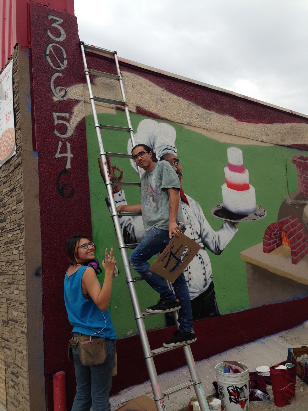 Benjamin Ironstand and Jeremy “Jez” Diewold-Brenner were our two lead artists. Cultural Arts Advisor Keith Bird offered guidance and instruction to them and the youth. Together, this incredible team transformed 5 previously blank and boring walls into gorgeous works of art.